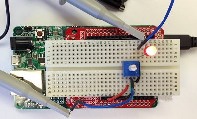 This example program uses an analog input to control the period of a PWM.