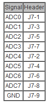 The TI LM3S microcontrollers used in the Eagle controller line support eight single ended or four differential 10-bit analog inputs with a sampling rate up to 500 kilo-samples/sec (kSPS). These signals are available in the following headers: