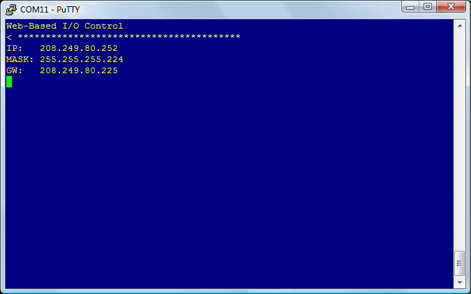 This example application demonstrates web-based I/O control using the Stellaris Ethernet controller and the lwIP TCP/IP Stack. DHCP is used to obtain an Ethernet address. If DHCP times out without obtaining an address, a static IP address will be chosen using AutoIP. The address that is selected will be shown on the OLED display allowing you to access the internal web pages served by the application via your normal web browser.